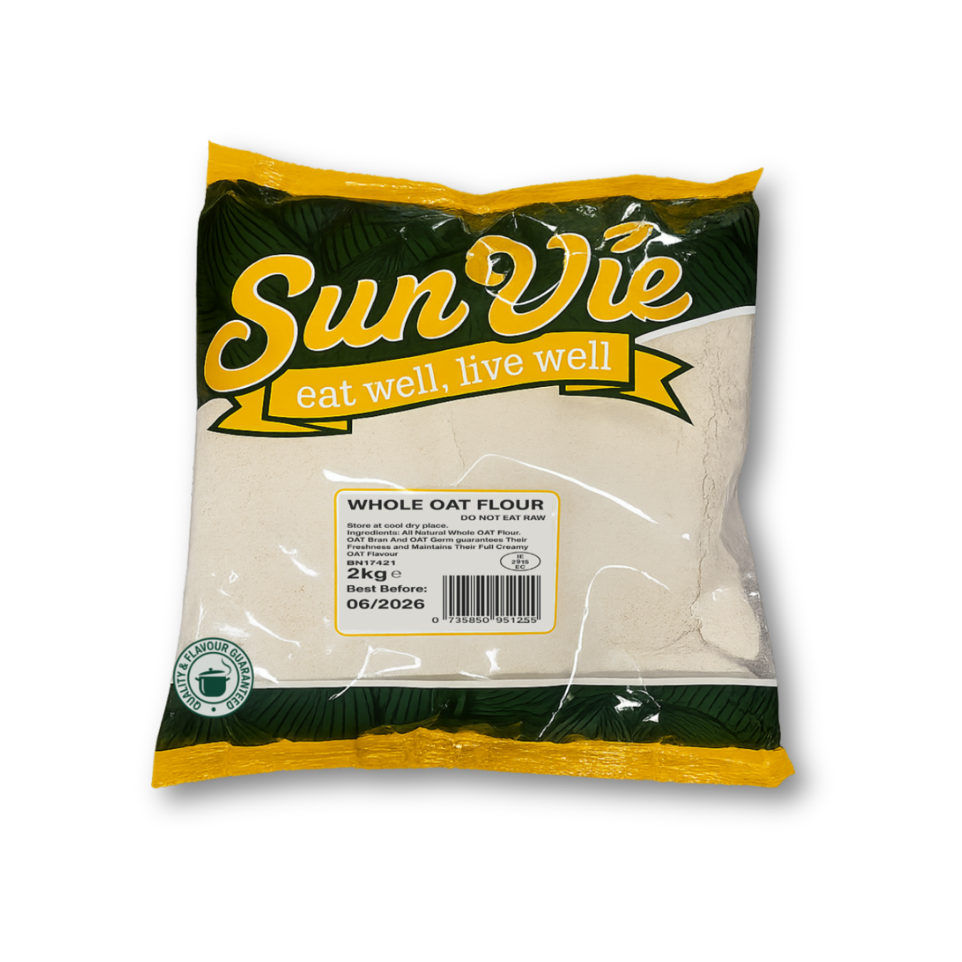 Type: Whole Oat Flour Form: Fine Powder Ingredient: 100% Whole Oats Packaging: Retail Pack / Bulk Bag Origin: Ireland Processing: Cleaned, Rolled, Milled, and Packed Usage: Perfect for baking bread, muffins, pancakes, and as a healthy thickener in smoothies or soups